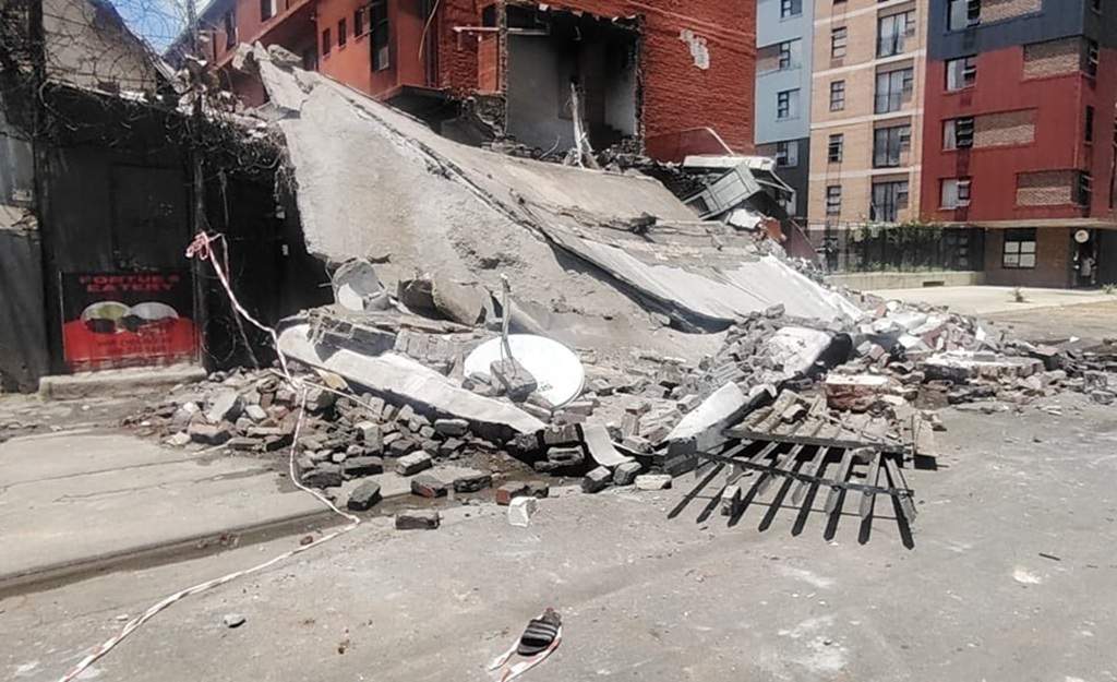 Puin, rommel en beseerde inwoners was oor die toneel van die ontploffing by die Ithemba-gebou gestrooi.