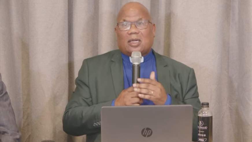 Eerwaarde Musa Xulu tydens sy pers-inligtingsessie Donderdag.