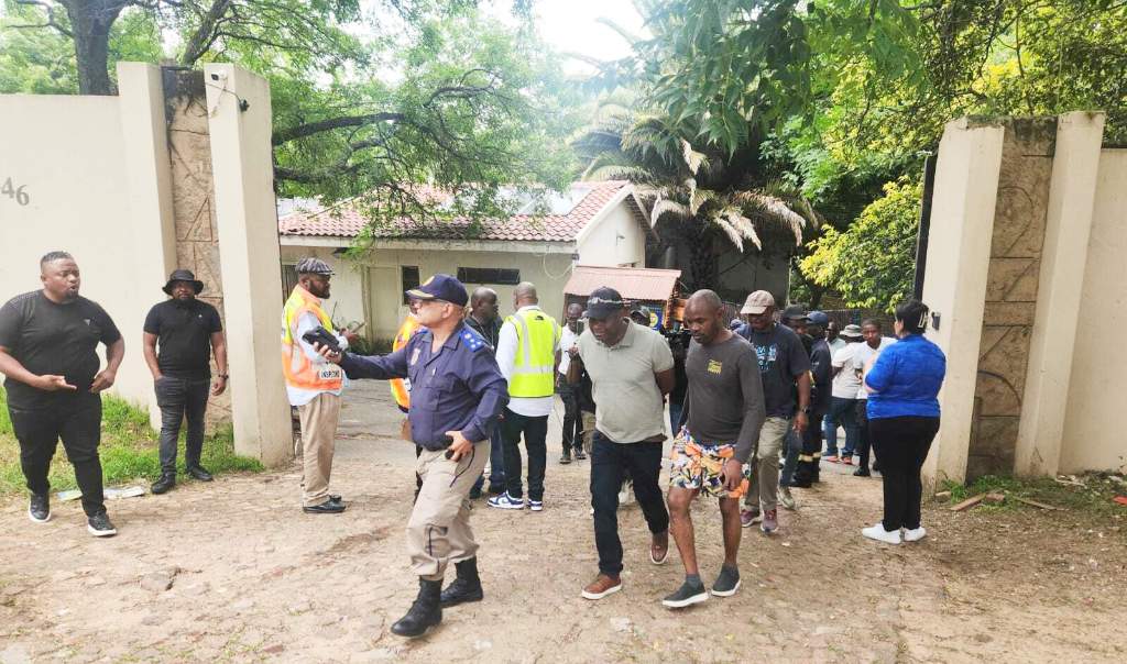Amptenare van die Johannesburgse metropolisiedepartement (JMPD) het Donderdag tydens ‘n klopjag ‘n gekaapte eiendom in Bryanston, Johannesburg, van Wendy-huise en -hutte skoongemaak en die vermeende kaper in hegtenis geneem.