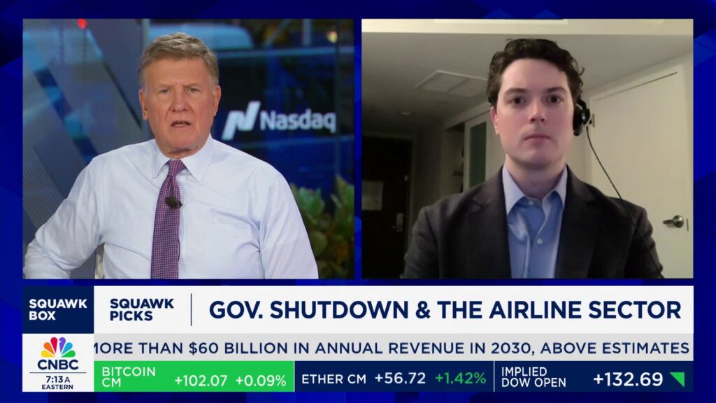 Tom Fitzgerald, TD Cowen-ontleder, sluit aan by ‘Squawk Box’ om die impak van die regeringssluiting op die lugrederysektor te bespreek, hoe ontwrigtings in lugreise kan lyk,