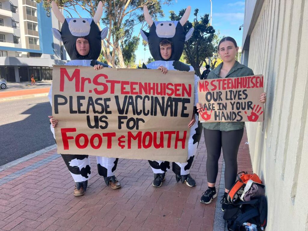 Peter Hauff en James Sharpe het 'n vreedsame betoging gelei en 'n beroep op landbouminister John Steenhuisen gedoen om die bek-en-klouseer aan te spreek.