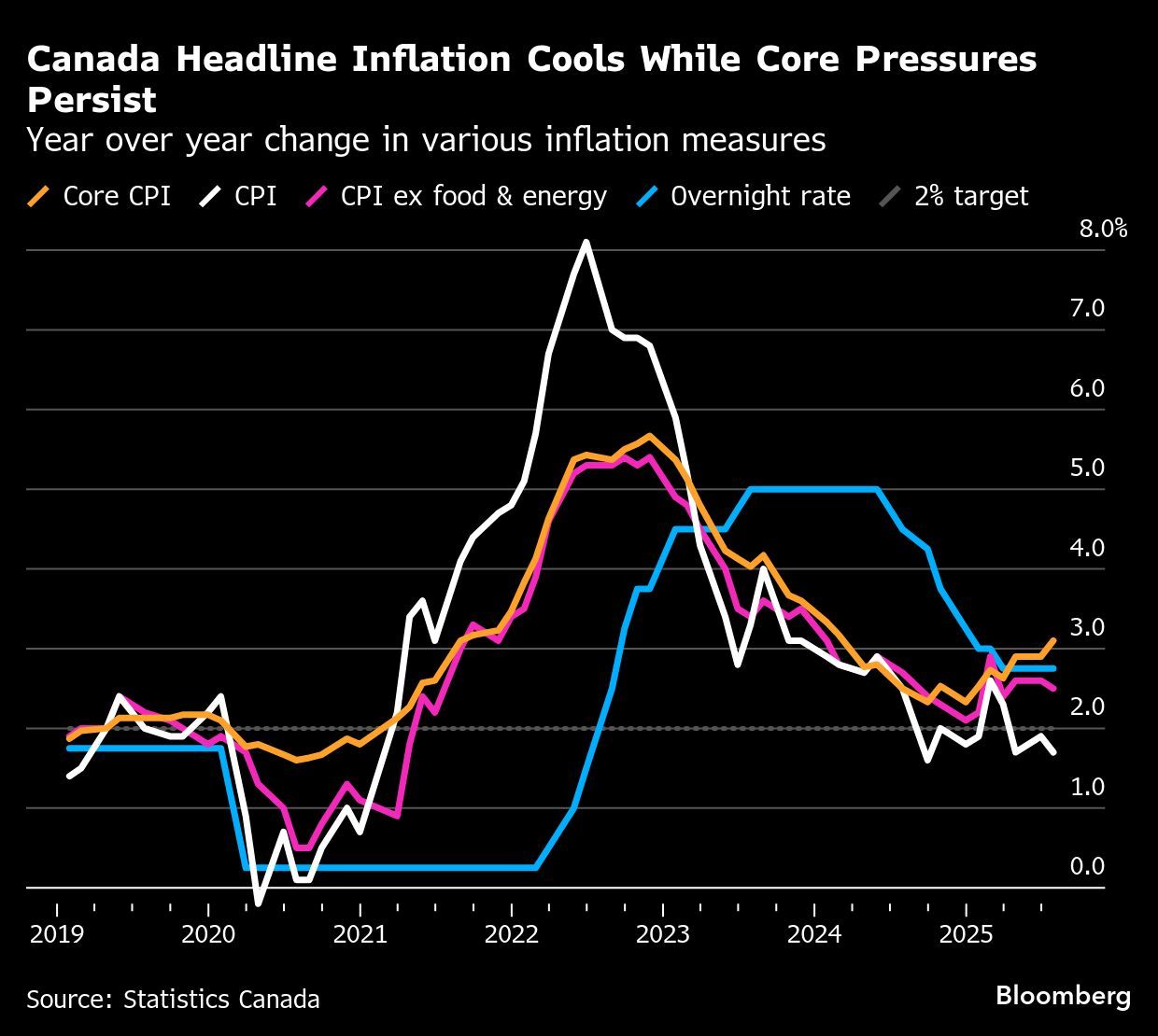 Kerninflasie, waarop die Bank of Canada geneig is om te fokus op die neem van geldelike besluite, het ongeveer drie persent gebly.