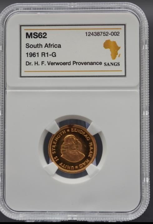 ’n Seldsame 1961-eensent-muntstuk wat eens deur oud-premier Hendrik Verwoerd besit is, saam met ’n 1961 goue R1 wat persoonlik deur hom geslaan is, gaan op 4 Mei by Bassani se Bevestigingsveiling onder die hamer gaan.
