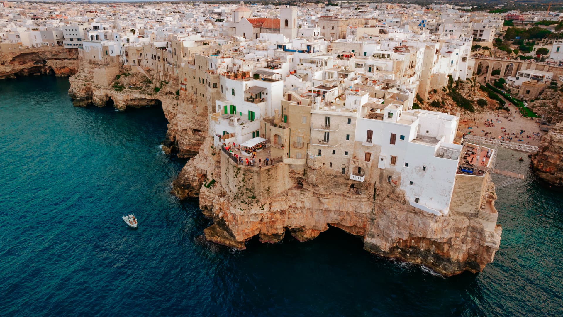 Polignano ‘n merrie in die streek Puglia. Italië.