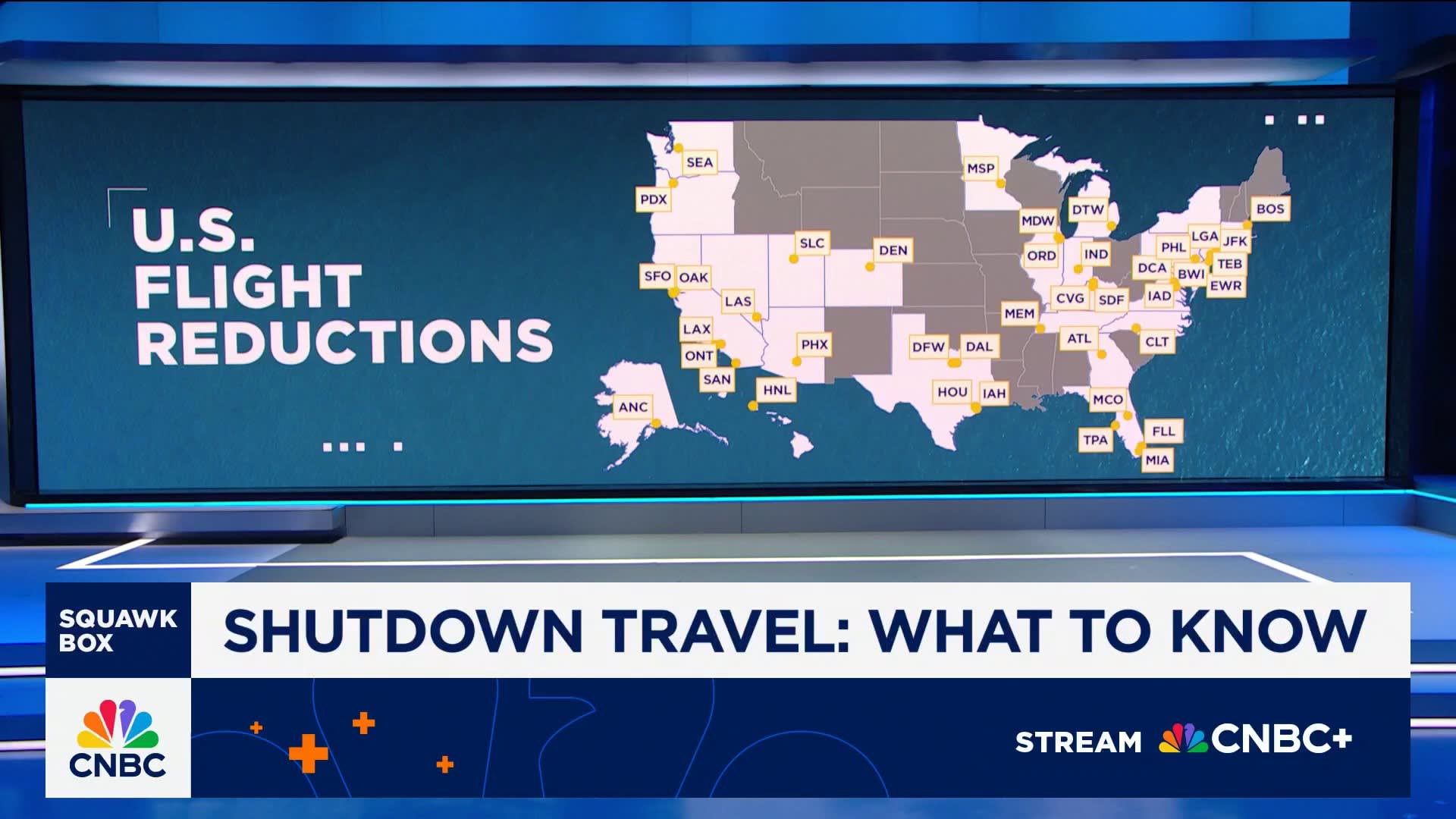 Terwyl die regering se stilstand voortduur, het die FAA ‘n vermindering van 10% van vlugte oor 40 groot Amerikaanse lughawens beveel. Sharon Epperson van CNBC sluit aan by ‘Squawk Box’ met meer oor wat jy moet weet om jou reisplanne te beskerm.